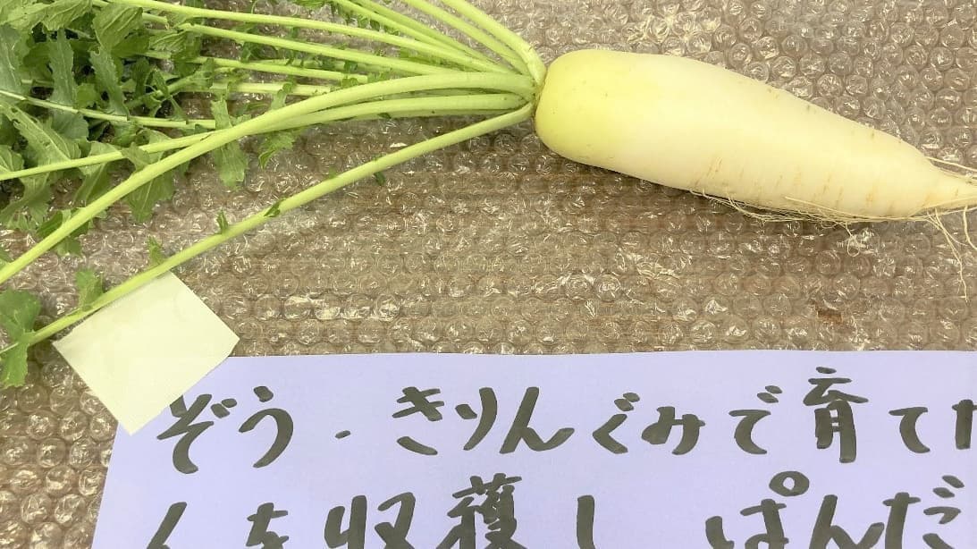 収穫した野菜は、調理室で調理していただき、給食に登場することもあります。自分で育てた野菜は味わいも格別です。